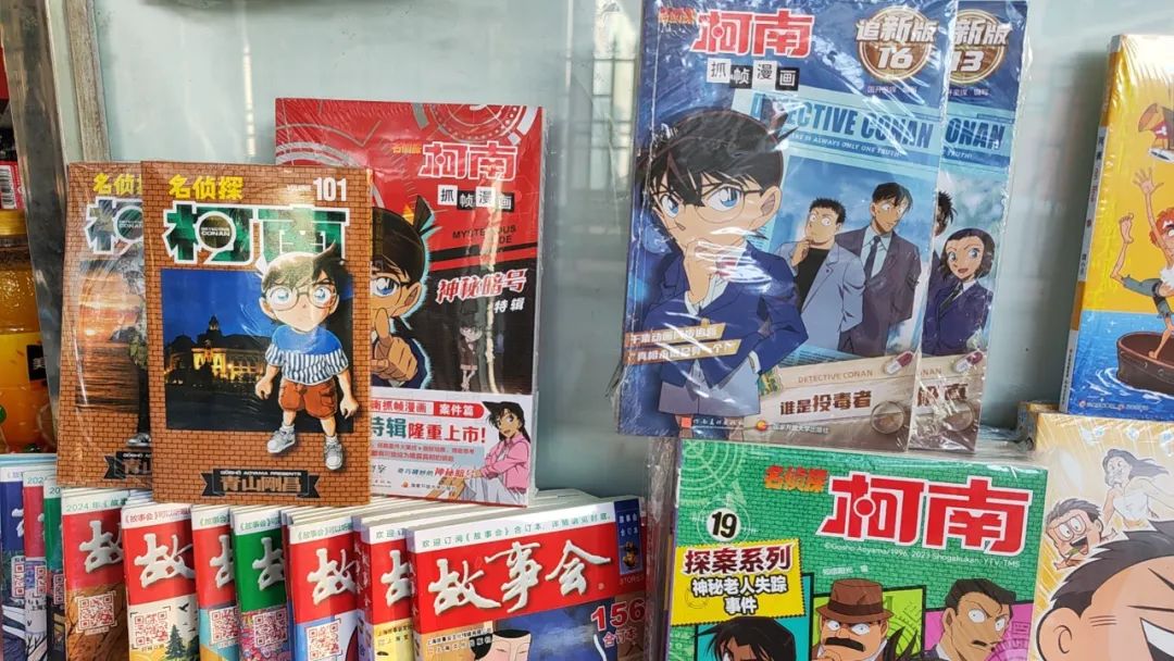 直到来到第三家报刊亭,我终于遇到一个询问《人民日报》和《新京报》价格的青年人,他最终买了一份《人民日报》。和大部分报刊亭不同,除了留出一小块地方摆放饮料外,杂志几乎占满了这家报刊亭的全部空间,种类和数量都明显更多。常见的书报杂志外,这里还售卖《名侦探柯南》《北京出行地图》《海淀区石景山区交通旅游图》《二次元狂热》和一些儿童读物。