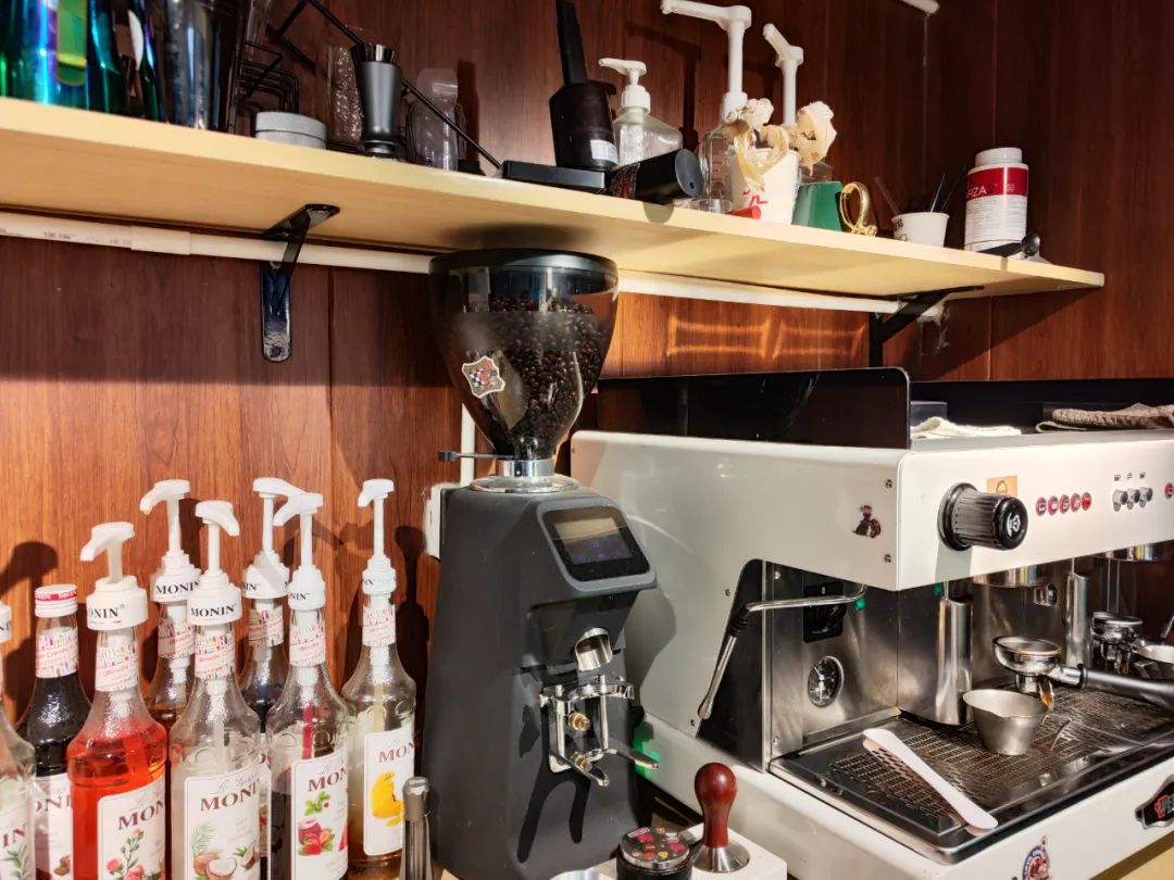 刚被辰哥接手时,报刊亭还有些破旧,看上去和咖啡完全不沾边。于是,辰哥把报刊亭里里外外重新装修了一遍,将原本有些昏暗的白炽灯泡换成了复古色调的家装灯,又铺上了木地板,这才有了现在的粉人咖啡。加上各种咖啡设备、展示柜、冰箱、空调,改造6平米报刊亭的成本是8万多元。