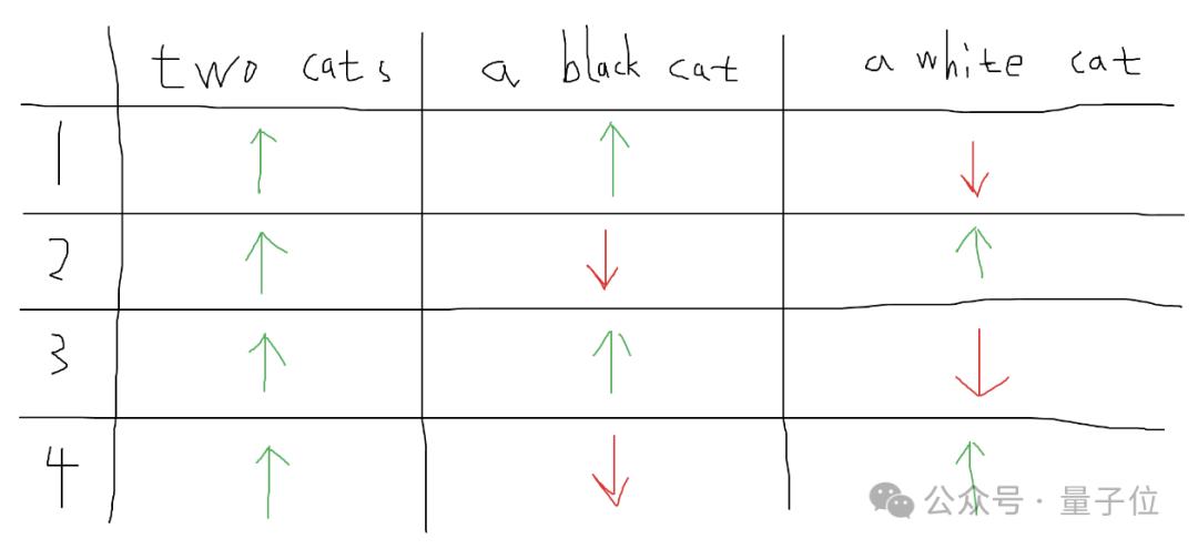 例如,如果LLM效果良好,“在暗室的木桌上的红瓶子前面有一个绿色瓶子”应该可以计算出如下图像: