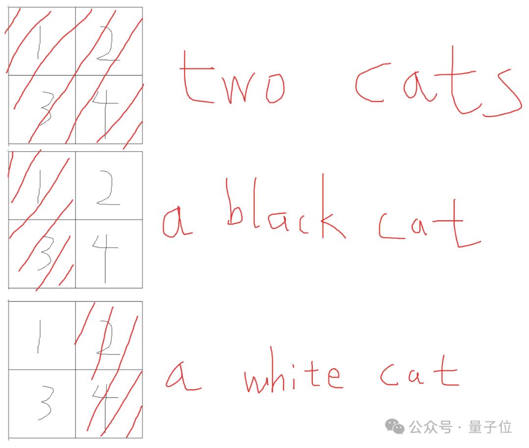 有三个提示“两只猫”、“一只黑猫”、“一只白猫”,有它们的掩码: