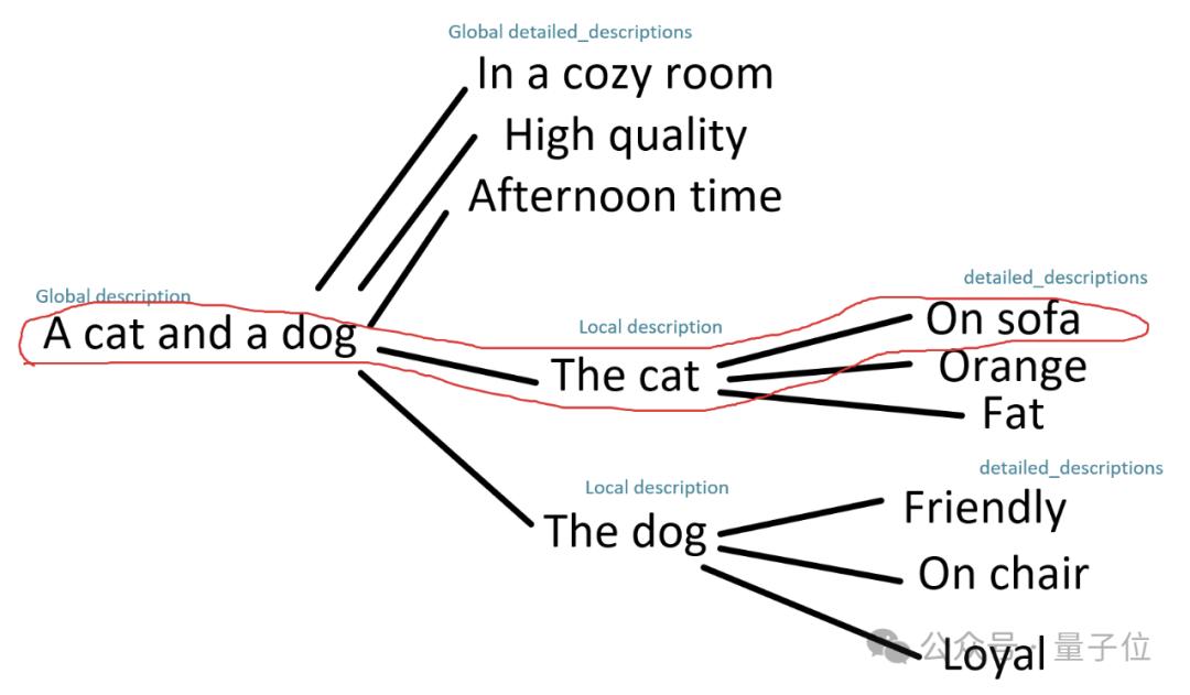 例如,下面的路径将给出提示“一只猫和一只狗。沙发上的猫”。