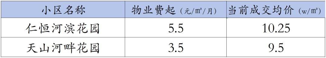 可以预见的是,如果天山河畔花园的物业再不加以改善,长此以往,两个相邻小区的单价之差可能就不是1字头了 。