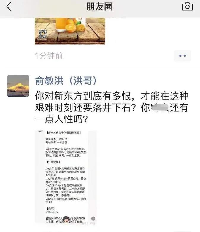 对此,新东方教育集团董事长俞敏洪在微信朋友圈里怒斥辟谣,“你对新东方到底有多恨,才能在这种艰难时刻落井下石?你特么还有一点人性吗?”