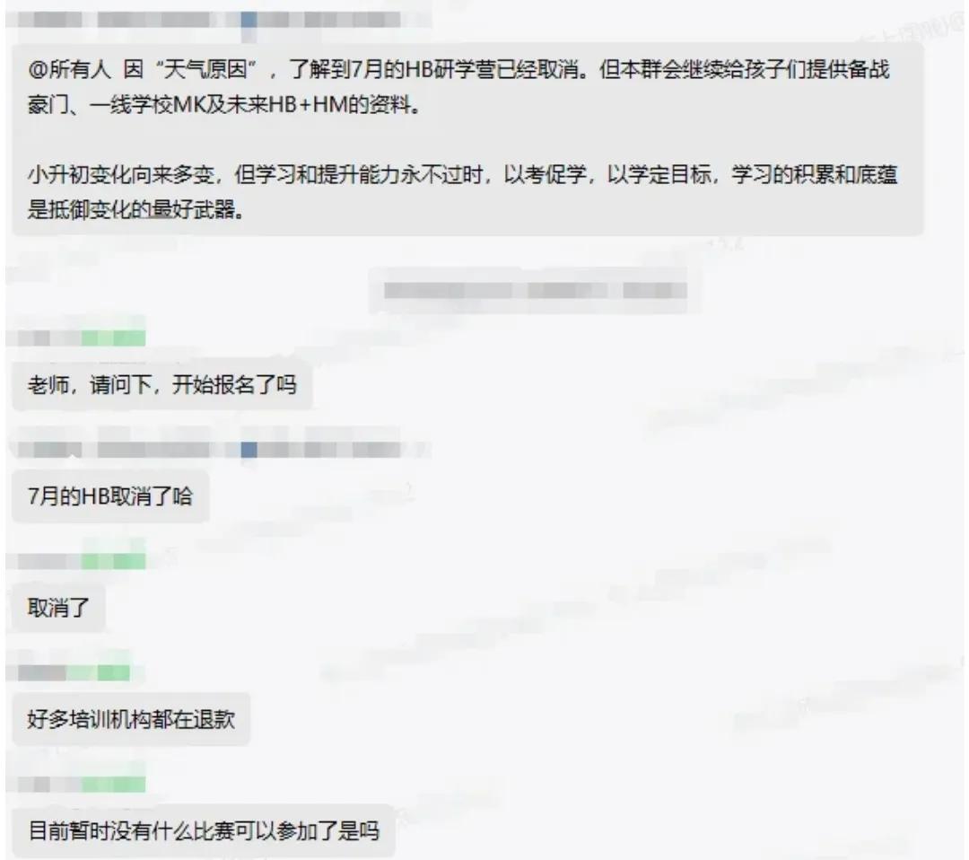 例如,鸡娃家长口中的“HB(华杯)”今年暑假夏令营已经宣布取消,而本来该项赛事计划今年7月组织亲子家庭出京到河南考试,且冠以“红色”的名号。