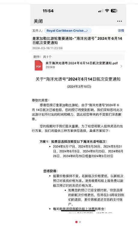 举个例子,今年皇家加勒比海洋光谱号6月14日上海始发的邮轮航次因为第三方公司临时包船,取消了大量乘客的预订,虽给出一定赔偿,仍引来网友在社交媒体上的大量热议与吐槽。