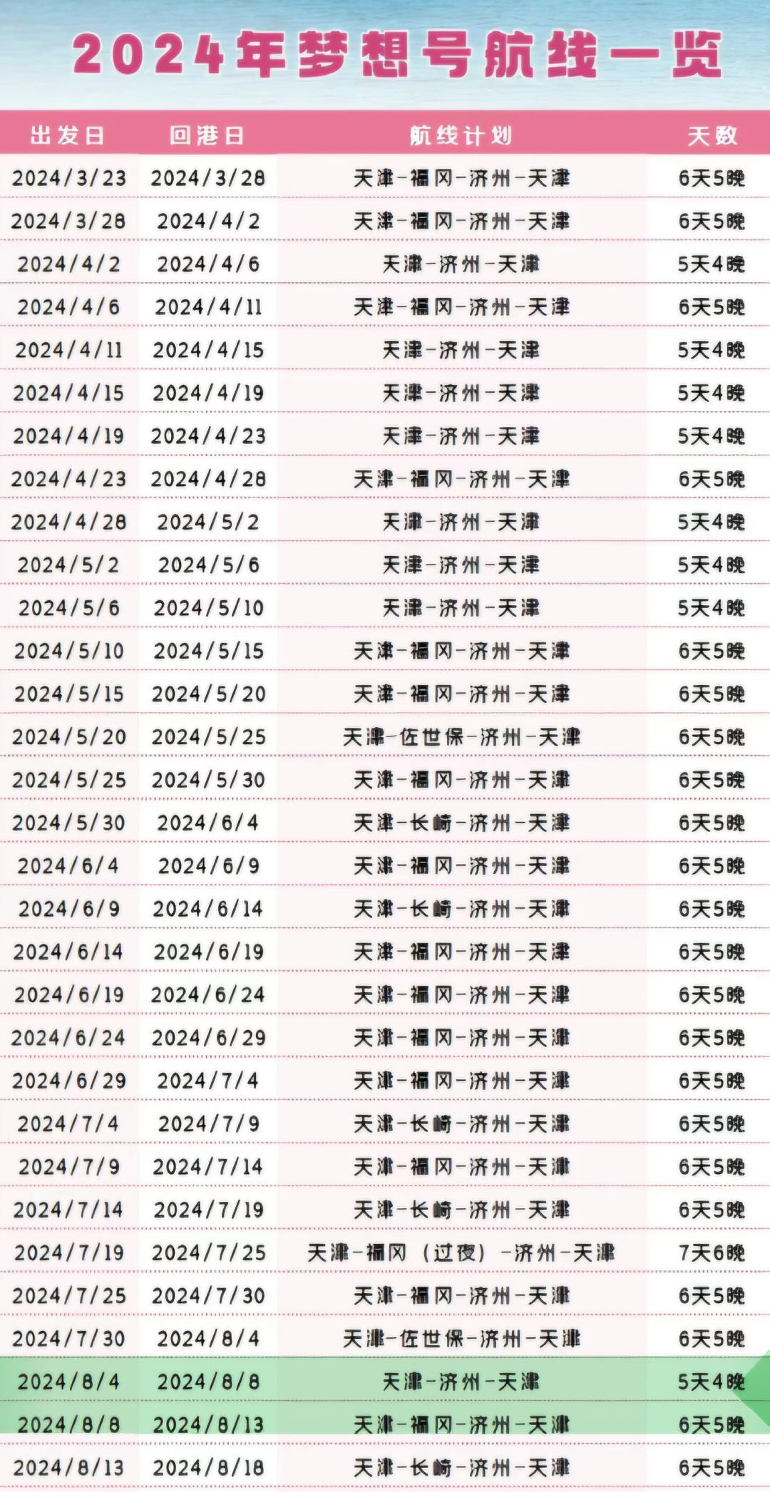 公开资料显示,目前国内从天津出发的国际邮轮航线仅有爱达邮轮地中海号与天津东方国际邮轮有限公司的梦想号。