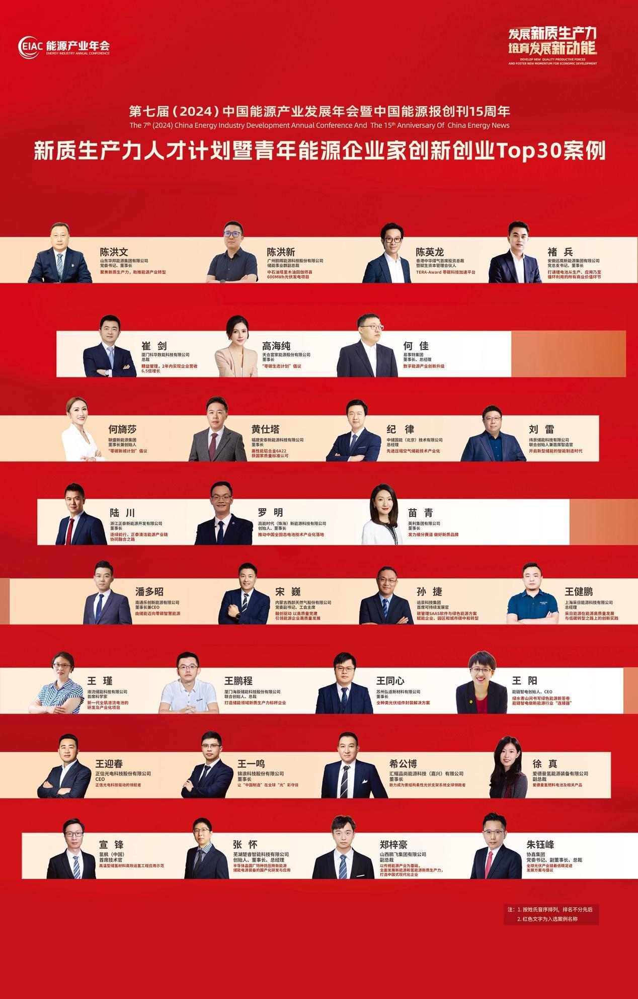 5月31日,第七届(2024)中国能源产业发展年会暨中国能源报创刊15周年论坛在北京举行。本次论坛活动由中国能源报、中国能源研究会主办,中国中小企业协会联合主办。会上,备受瞩目的“青年能源企业家创新创业Top30案例”正式发布,香港中华煤气首席投资总裁暨赋生资本管理合伙人陈英龙及其领导下“TERA-Award零碳科技加速平台”成功入选。