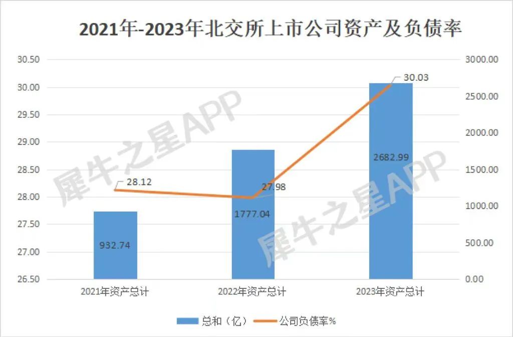 2023年北交所整体的资产规模超过了2600亿,并且三年间均实现了正增长;不过与此同时,负债率水平小幅上升,资产负债率增速相对良性。