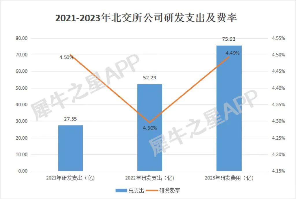 最令人欣喜的是北交所公司整体有越来越注重创新的趋势,近两年北交所公司的研发总支出增长了2倍。