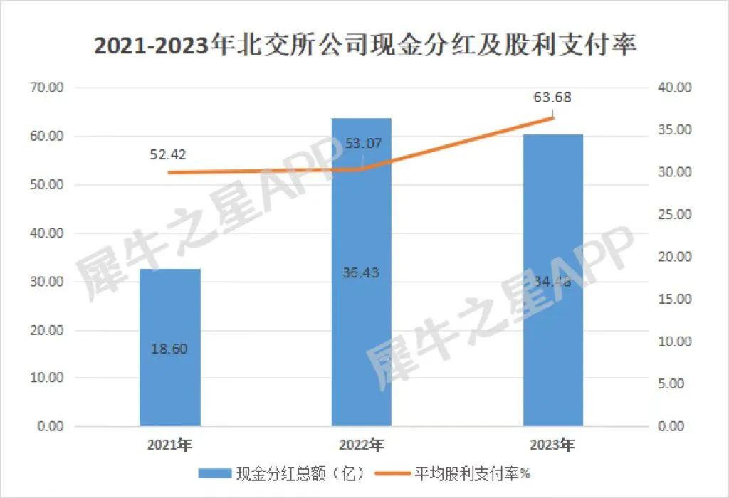 虽然板块公司平均体量未见增长,但新上市的公司们都是非常乐于分红的主,2023年北交所整体现金分红的规模达到34.48亿元,平均股息率也达到了三年最高的水平。