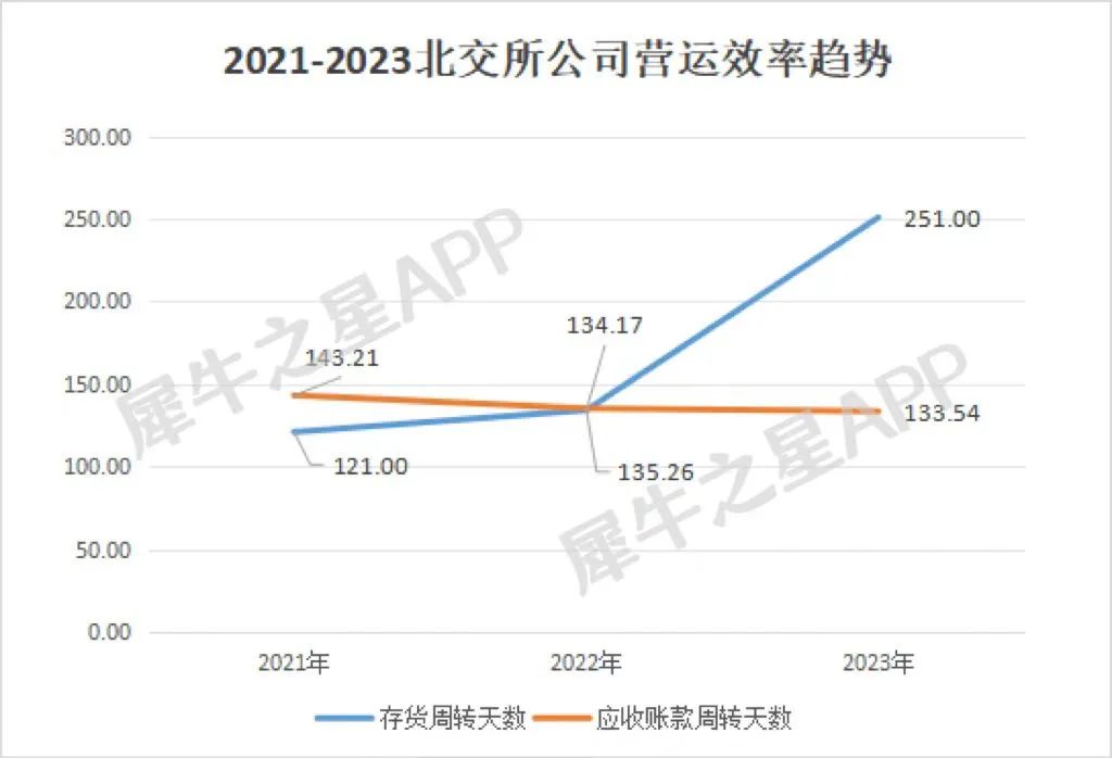 2023年北交所内公司的存货周转天数达到了251天,远高于三年同期。充满竞争的压力的市场,在这个营运层面充分体现。