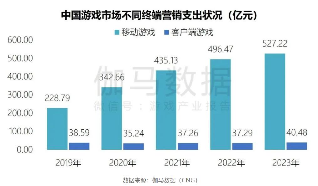 坏消息是, 近五年,客户端游戏市场营销费用率均保持在 6% 的水平,远低于移动游戏整体市场营销费用率的 15% ,甚至高峰时超过 20% , 这主要由于客户端游戏以品牌营销为主要营销模式 。