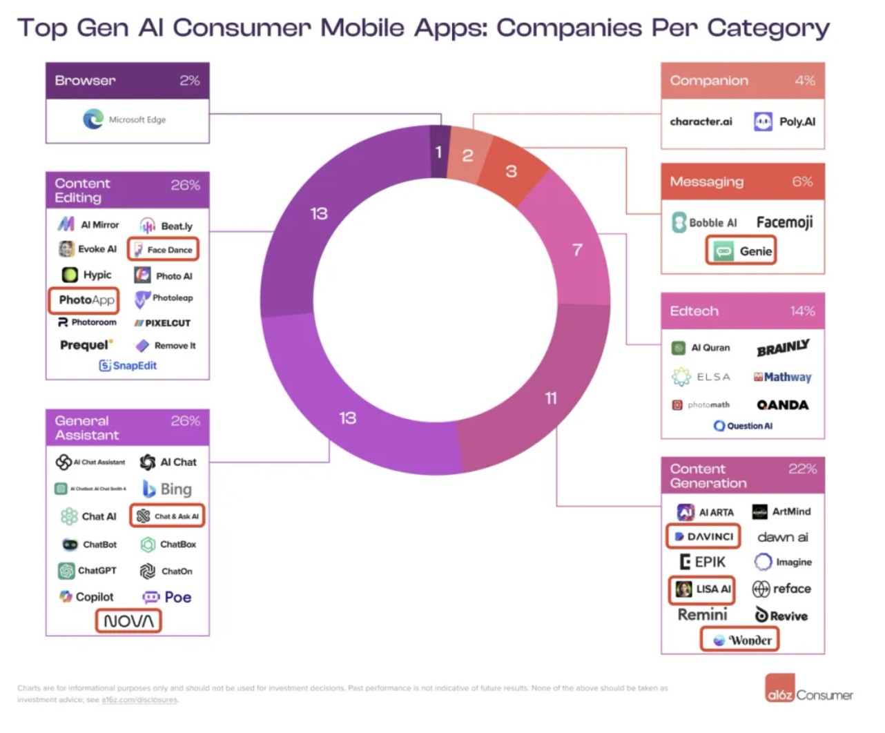 a16z 按照产品类型分类的 AI App 榜单,注:红框中的产品是土耳其开发者的产品|图片来源:a16z