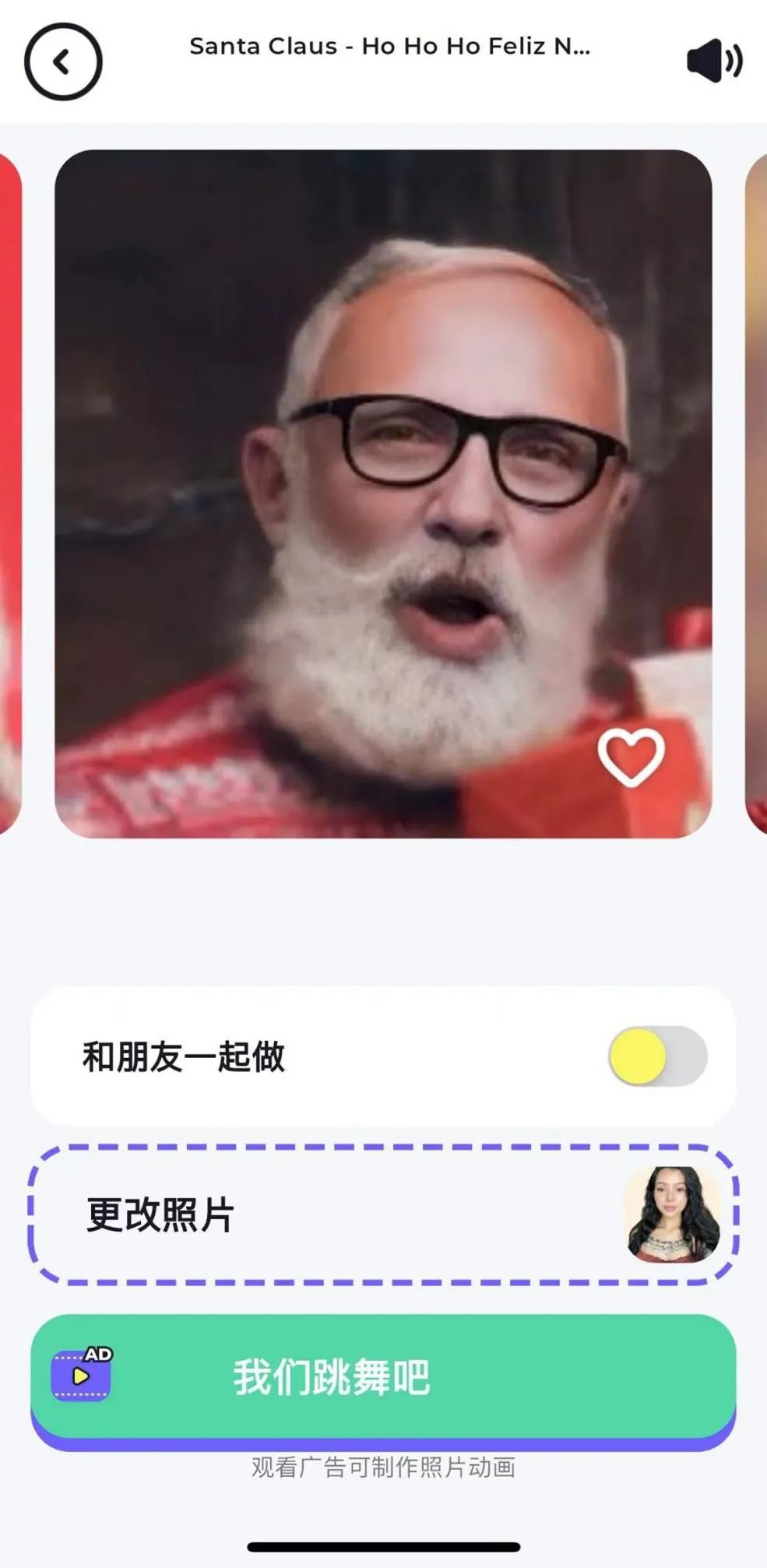 而如果用户不选择付费,也没有激活免费体验的话,产品的付费页面也只会在每次打开产品时进行展示,使用期间不会频繁弹出,用户只要在制作 Face Dance 视频前观看广告,就可以免费制作并下载了。
