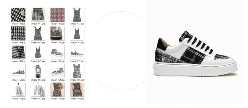 他说,为了解决AI生成设计的可生产性,他们构建了专注于女鞋的十万级数据集,在基于品牌风格的女鞋设计生成、针对不同材料和鞋型的设计生成、虚拟穿搭以及AI自动制图等应用场景拥有丰富的数据资源和技术经验。利用团队长期积累的专业数据集,对扩散模型等图像生成模型进行了精准微调。并且进一步对接生产制造企业的鞋楦库、鞋底库、材质库、配件库等多个生产资料库。