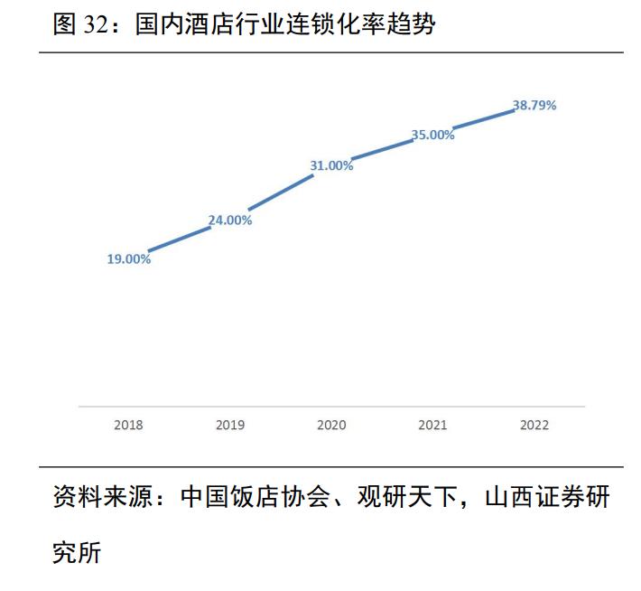 《2022年中国住宿业发展报告》显示,2022年年末全国三线和四线以下城市连锁化率分别为24.19%和15.40%,远低于一、二线城市的44%和36%,相比于发达国家的70%以上,我国三四线城市的连锁酒店明显有着极大的市场发展空间。