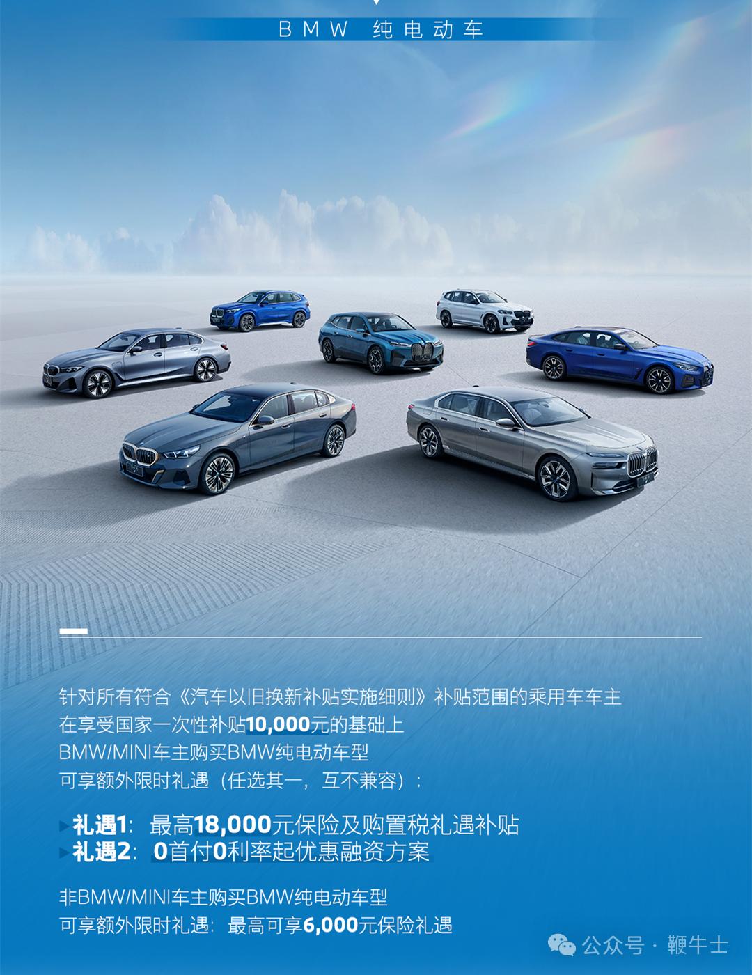 此外,宝马官方也宣布针对宝马适用车型,老车主购买宝马燃油及纯电适用车型,可享至高18,000元的保险及购置税礼遇或0首付0利率起优惠融资方案;新客户购买适用车型,则可享至高6,000元保险礼遇。