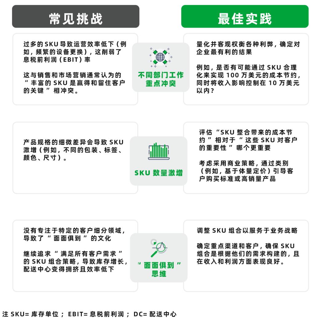 • 优化产品组合:比如淘汰生产效率较低、生产困难或耗时、与其他SKU重复或不盈利的SKU