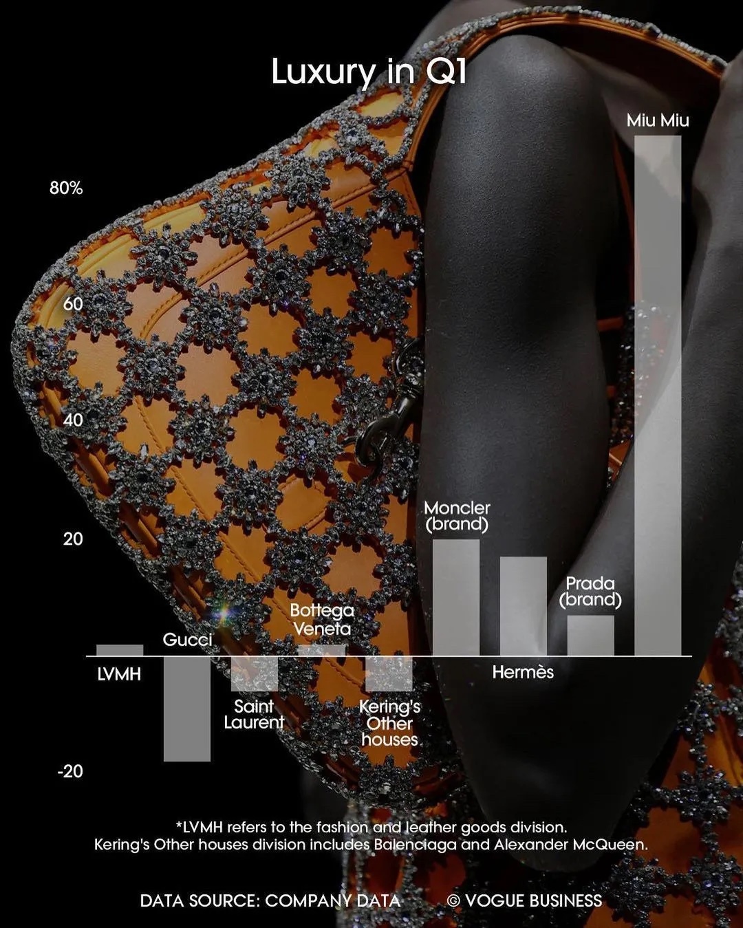 2024Q1各大奢侈品集团业绩增长幅度对比