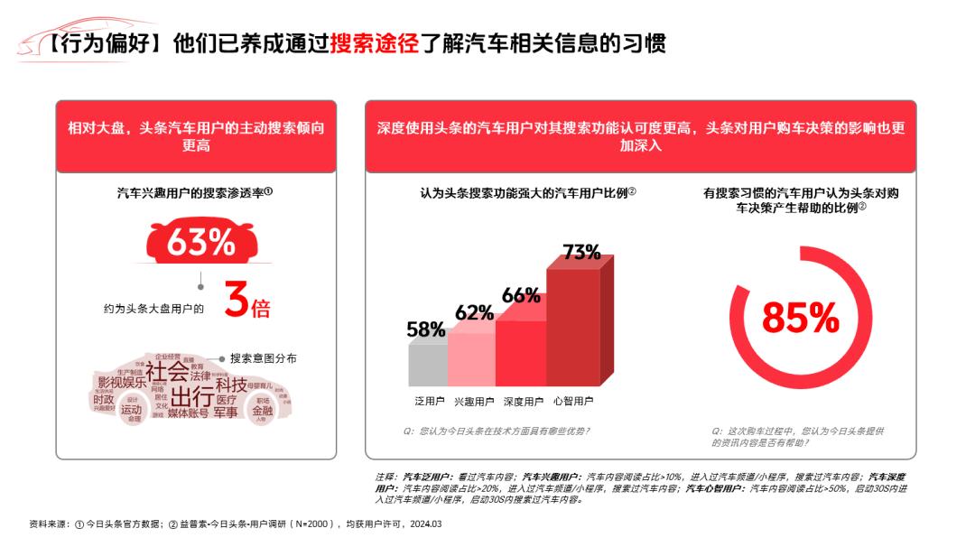 据《2024今日头条汽车营销白皮书》显示,今日头条作为汽车营销的重要平台,一方面兼具高价值用户与高效引爆能力,另一方面也在不断通过理论武装和实践落地,助力车企找到营销新解法。