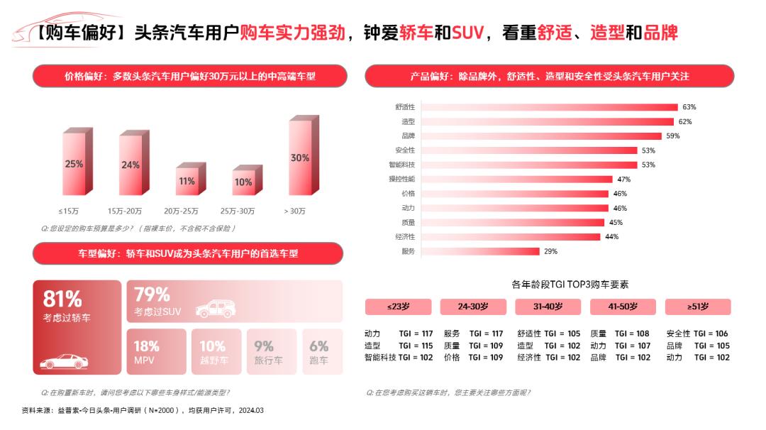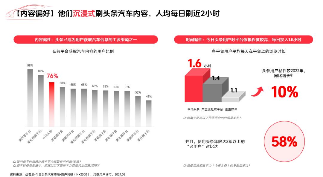 由此可见,头条平台用户本身具有高需求、高黏性、高心智的“高价值人群”特性,是车企品牌必争的核心目标人群。