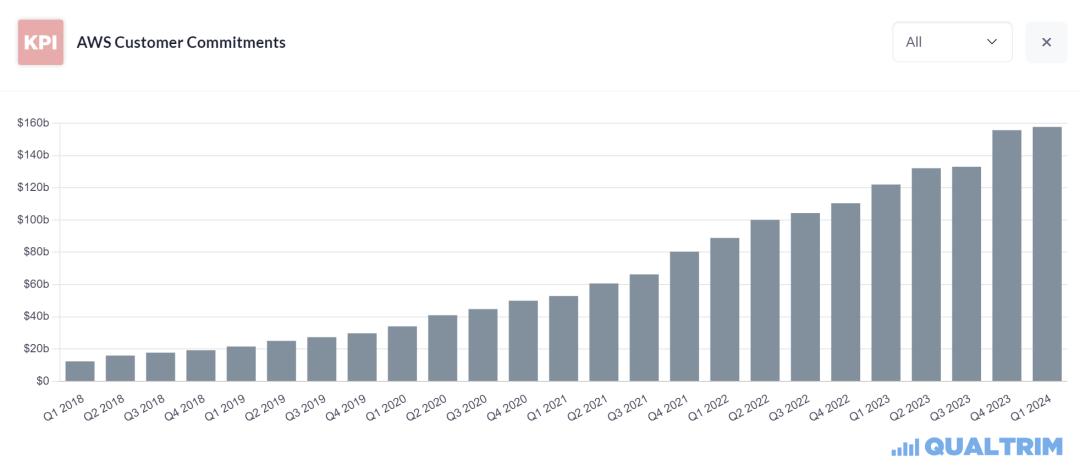 根据预测,以上是尚未给AWS提供收入,但有明确支出承诺的金额图表,可以看到,这些潜在收入的规模是在加速增长的。这在某种层面可以解释为啥亚马逊要大幅度提高资本开支:他们需要在这个贡献利润最高的业务板块上投入重注,今天花的钱越多,明天赚到的也就越多。