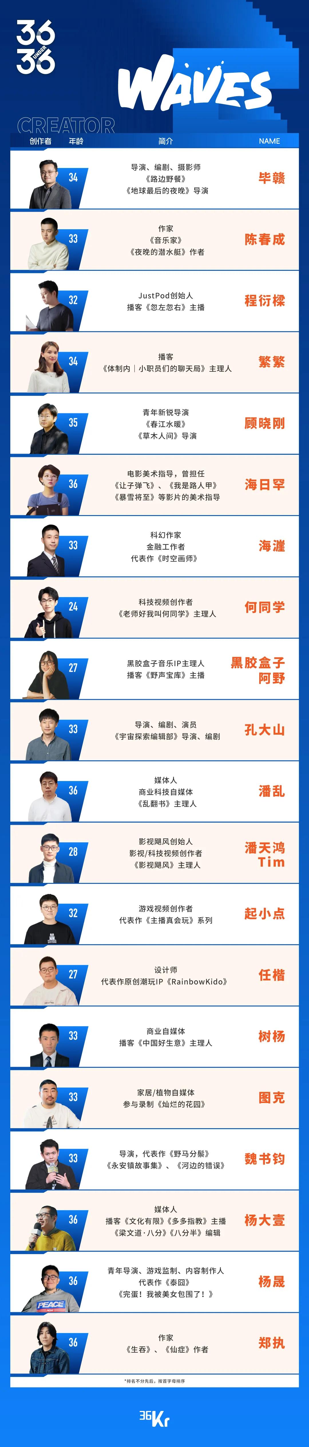 我们邀请本届所有Under36入选者,参与2024新浪潮WAVES大会,时间6月14-15日,地点北京郎园Station。也欢迎各界朋友扫描下方海报中二维码,来WAVES现场!不见不散!