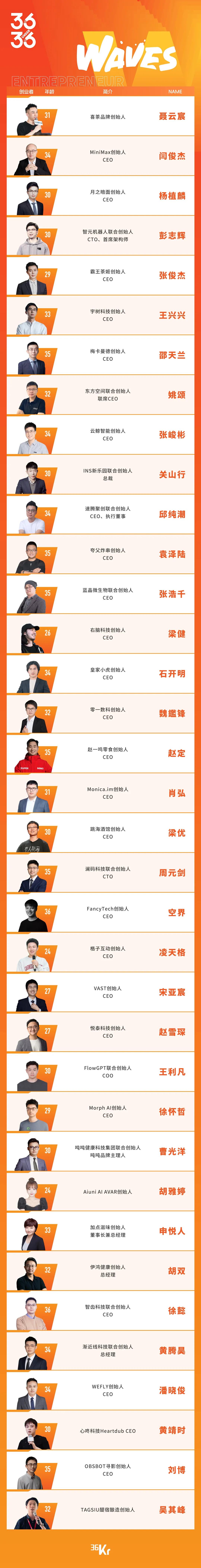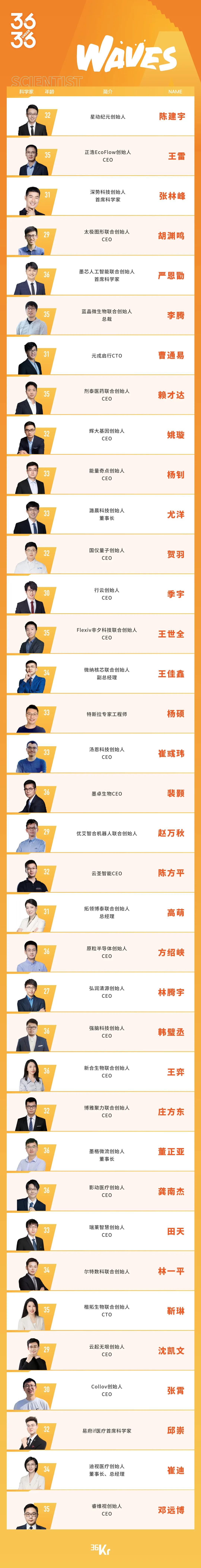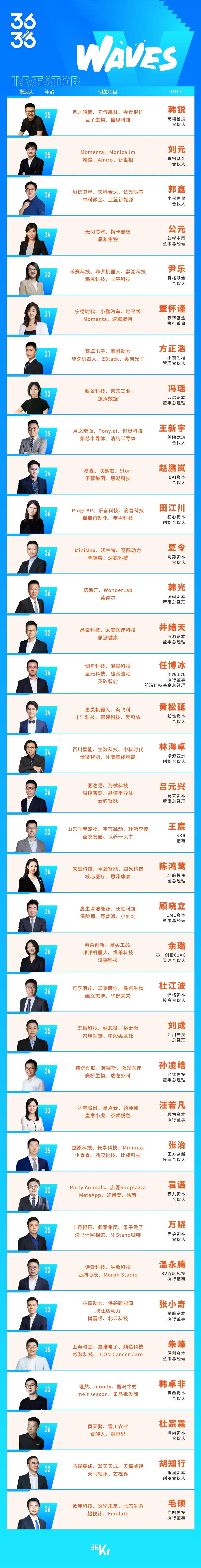 在评选过程中,不同类型的候选人,我们采取了针对性的评选方式:Under36投资人的评选逻辑依然按照业绩(70%)+互评(30%)的方式完成;而Under36创业者、科学家则是通过“暗涌Waves”编辑部初筛+投资人投票的方式完成。