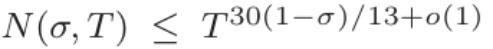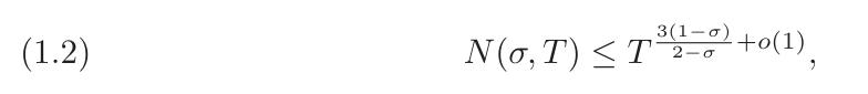 事实证明, σ=3/4 是一个关键值。1940 年,Ingham 得出了𝑁(3/4,𝑇)≪𝑇(3/5+𝑜(1)) 的界限。