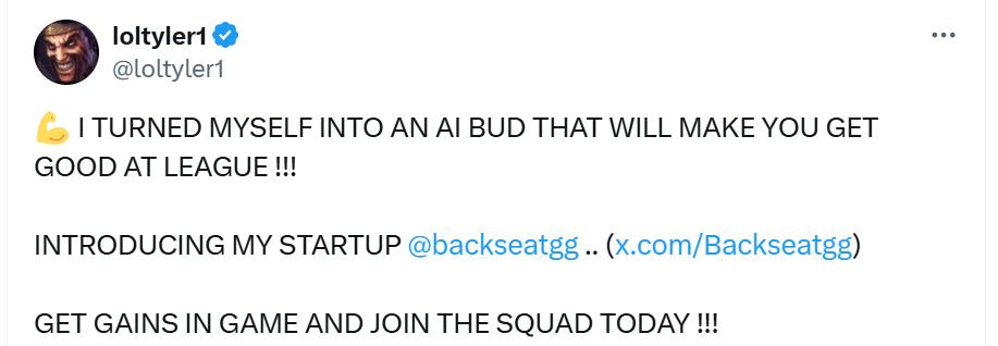 嘴炮王者Tyler1化身免费AI陪玩,帮你在英雄联盟中打爆三路,轻松上分