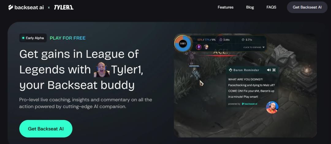 如果他成为了你的 LOL 教练,你觉得你能在对局中获胜吗?这不是无厘头的想象,而是现实。Tyler1 在 X 平台上发文表示,「 我把自己变成了一个 AI 伙伴,让你在《英雄联盟》中变得更强!」而实现这一切需要 Backseat AI。Backseat AI 是一个免费的 LOL AI 搭子。在游戏过程中,它将通过语音为玩家提供实时的游戏评论和建议,包括购买装备的建议和对线策略等。无论你是新手还是老手,Backseat AI 都能帮你提升游戏体验,让你更快掌握游戏技巧。它已经获得了 Riot 的官方认可,所以无须担心被禁号。