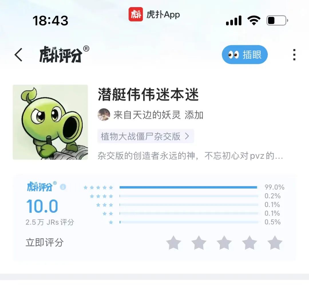 更离谱的是,在虎扑这个平台,我们原本想看看用户对这款游戏的评价,发现的确很火,在游戏的评分当中,超过2.5万人给作者「潜艇伟伟迷」打出了10.0的满分。