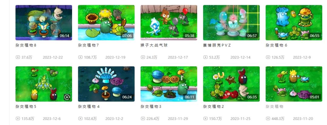 「潜艇伟伟迷」在2023年11月20日发布了这个MOD的第一期视频,名为「杂交植物」,截至目前是他所有视频当中播放量第5高的视频,达到了448万播放量,此后他又接连发布了「杂交植物2」、「杂交植物3」....