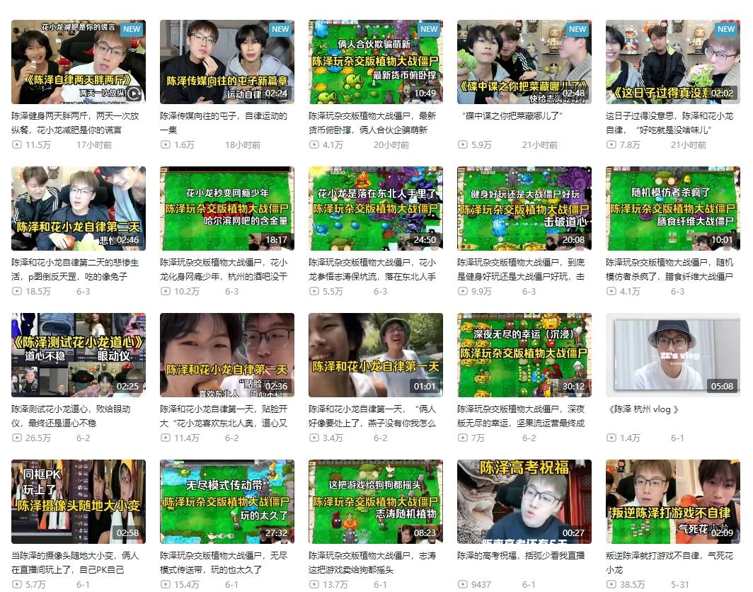 而陈泽更厉害,从4月27日发布第一个与植物大战僵尸相关的视频,到今天一共发布了120条视频,其中接近50个视频是植物大战僵尸主题,占比率超过了40%。