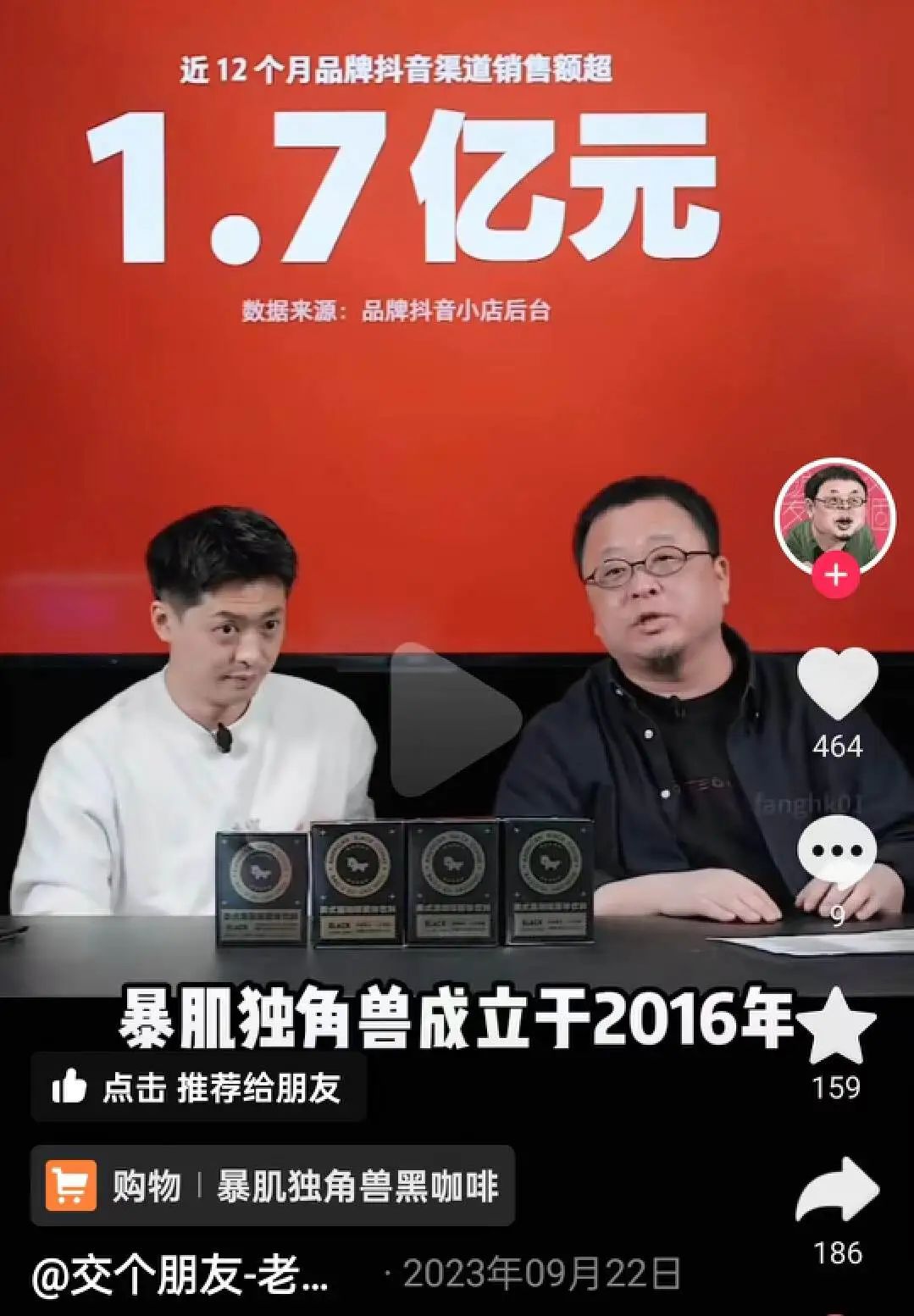 爆肌独角兽成立于更早的2016年,也是主营低脂零食和主食代餐,近12个月抖音渠道销售额超过1.7亿元。在罗永浩直播间中,“喜欢焦香的朋友可以选这款,一袋不到5毛钱。”罗永浩对爆肌独角兽的黑咖啡火爆,有很大的助益。