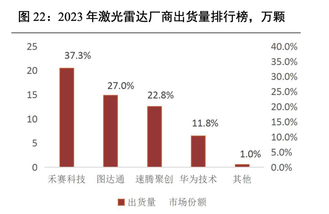 2023年中国激光雷达厂商市场格局,图源山西证券