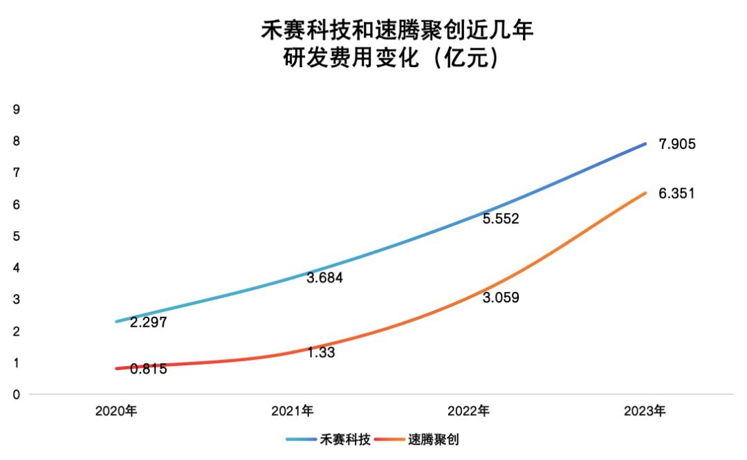 禾赛科技和速腾聚创近几年研发费用变化,连线出行制图