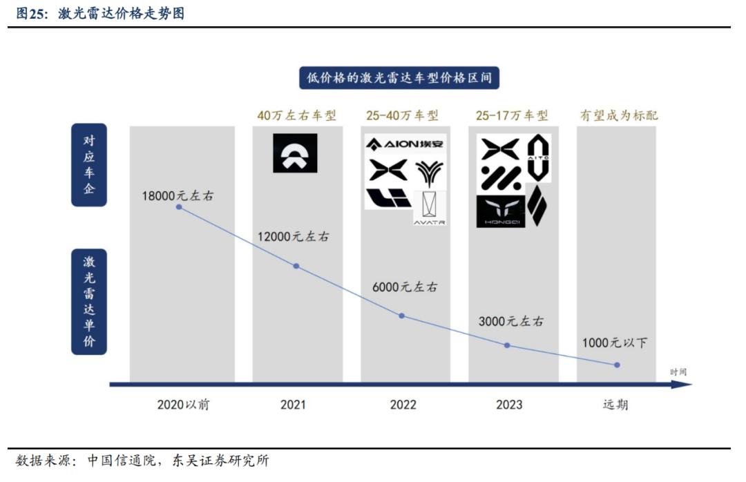 国金证券此前就曾统计称,2021年时,搭载了激光雷达的车型价格普遍高于40万元,车载前装激光雷达的价格普遍超过5000元。