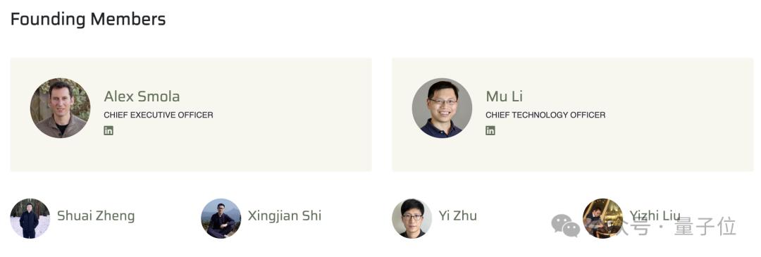 还晒出了团队创始成员,除李沐和Alex Smola外,还有四位成员。