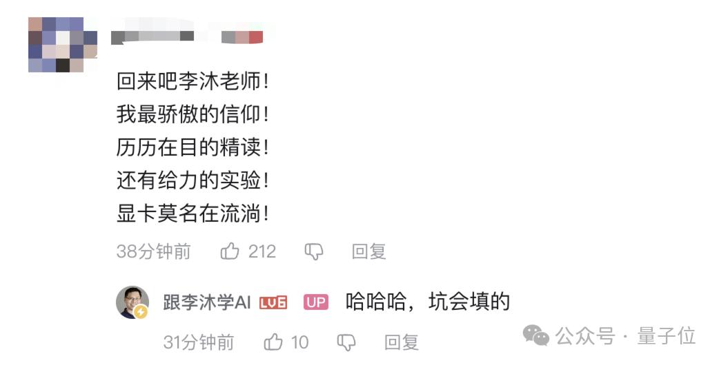 得知消息的不少网友已激动在评论区催更,李沐老师也回应,视频坑还是会填的: