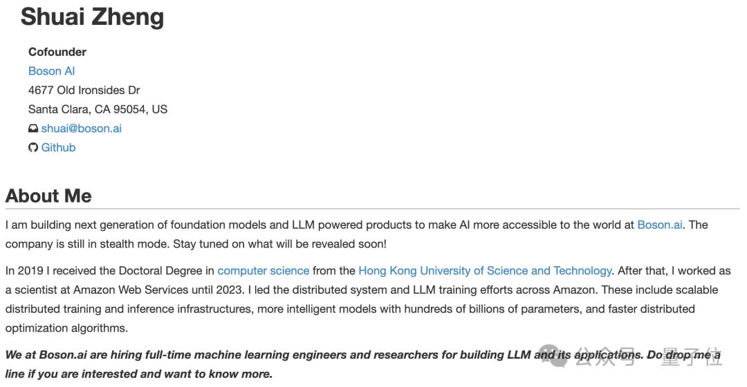 此前有消息爆料,从亚马逊首席科学家的职务上离职后,李沐联手其导师、另一位亚马逊出身AI大牛Alex Smola创办了创业公司Boson AI。而公司方向是利用大模型能力,做和游戏娱乐有关的项目。