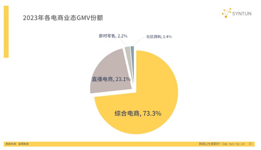 据星图数据发布的2023年中国电子商务行业动向报告,在综合电子商务平台的市场份额中,天猫凭借46.0%的份额保持领先,但增长有所放缓。京东以27.2%位居第二,拼多多以26.8%位列第三。在直播电商市场,排名第一的则是抖音电商,占领了近50%的市场份额。