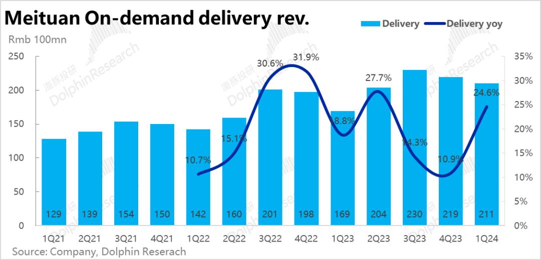 即便不看预期差,单从过往业绩趋势的角度,尽管同期基数是走高的,美团即配单量增速却环比提升了2.5pct,也着实是情理之外。具体是什么原因,导致实际增长比已在3月底给出的指引明显要高,需在电话会中重点关注。