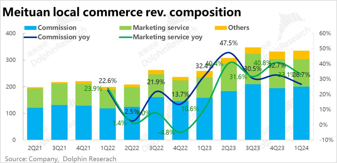 更多边际反映到店业务的佣金和广告收入表现上,本季佣金和广告营收的同比增速分别为26.7%和33.1%,两者都跑赢了到家业务“锚定指标”--配送收入的增速。