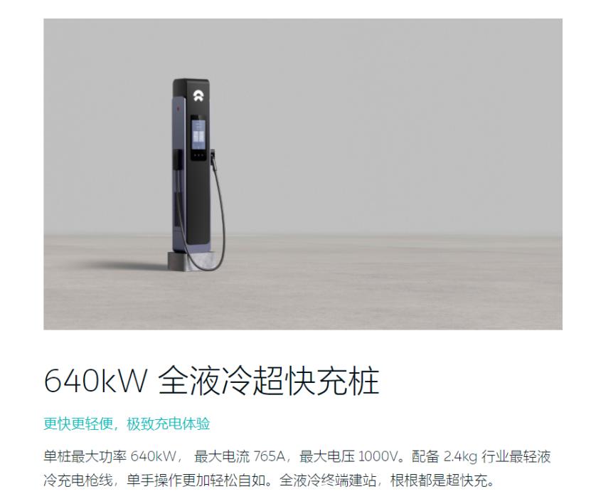 在技术领域,蔚来的充电技术同样保持领先。近日,蔚来官宣640kW全液冷超快充桩很快将正式亮相,可以在5分钟内为车辆充电255公里,是目前投入应用功率最高的充电桩之一。