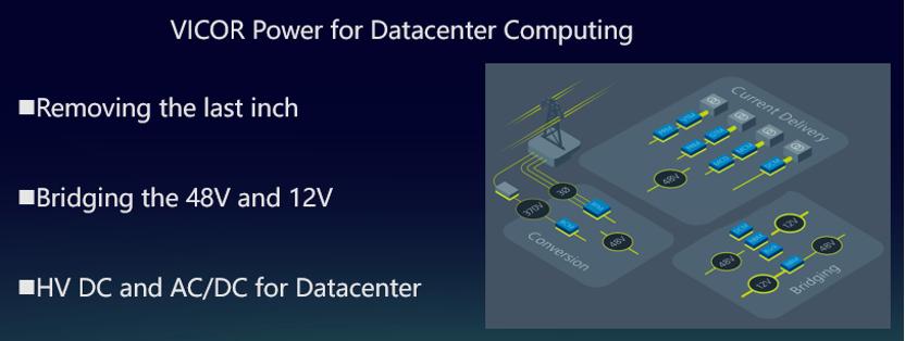 当前,为数据中心提供电力的配电网(PDN)广泛采用的是传统的12V电源架构,Vicor则是一只主张48V电源架构的那个,