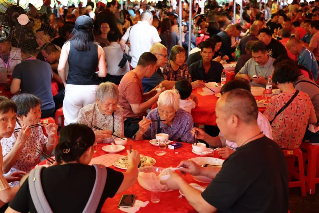 扒完龙船,就到了大家最爱的吃龙舟饭环节。(图/林泽君摄)