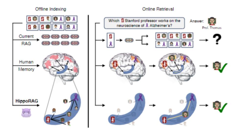 图1.海马体和HippoRAG的对比