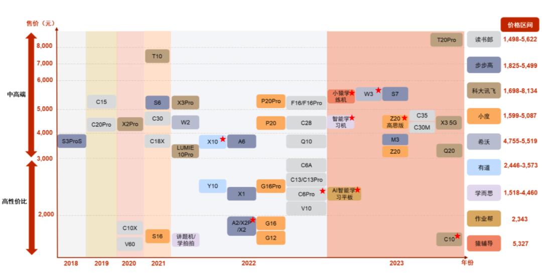 并且,随着AI大模型功能的加入,6000元以上价格段的超高端学习机产品,正在快速被市场接受。