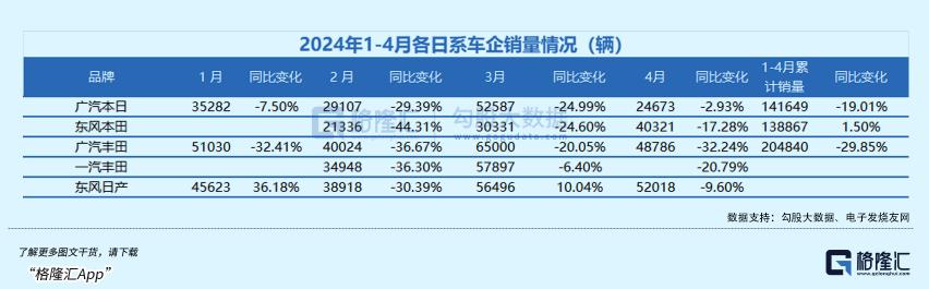 日系三强中,本田1-5月累计销量下滑16.7%,继去年下滑10%之后颓势不止;丰田1-4月累计销量下滑9.3%,日产跌幅接近30%。